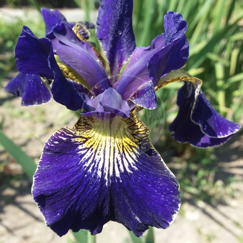 Deep sky blue flowers, shaded with darker blue tones, falls painted with intricate yellow and white blazes at the base and edged in golden yellow. Height 75 cm. Fine tetraploid sort.
