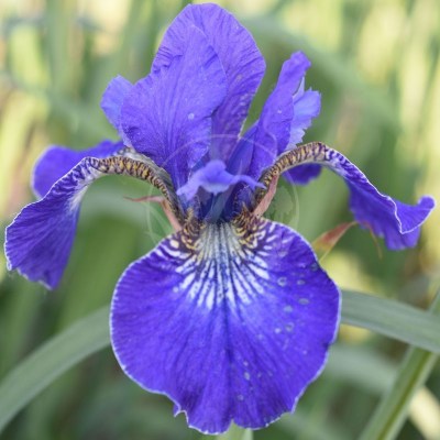 Deep sky blue flowers, shaded with darker blue tones, falls painted with intricate yellow and white blazes at the base and edged in silver. Height 70 cm. Fine tetraploid sort.
