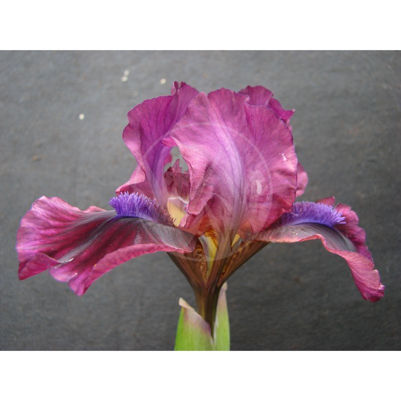 Standards dark purple violet, falls dark black cherry spot shading to red purple margin. Beards purple. Pronounced spicy fragrance.