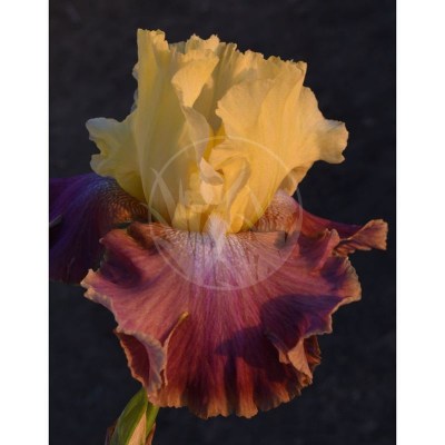 Standards light yellow, falls claret magenta with white blaze around beards. Beards yellow in throat, cream in middle, white at end. Flowers nicely ruffled.