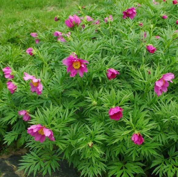 Květy jednoduché, purpurově růžové s nápadnými žlutými tyčinkami, 8 cm v průměru. Po odkvětu vytváří zajímavé plody s lesklými černými semeny. Velmi dekorativní, jemně členěné listy, dorůstá do výšky cca 80 cm. Velmi odolná pivoňka pro slunečná až polostinná stanoviště a neutrální až vápenité půdy, vhodná do přírodních zahrad. Zasílám tříleté rostliny zasazené v 2 l kontejneru.