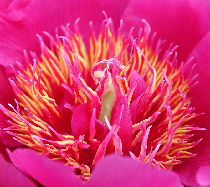 Květy jednoduché až poloplné, cca 10 cm velké, jasně růžově-červené, ve středu zdobené nápadnými zlatožlutými tyčinkami. Kvete velmi časně, dorůstá pouze do výšky 40-50 cm. Pivoňka pro slunečná, nebo mírně polostinná stanoviště, vhodná do přírodních zahrad.